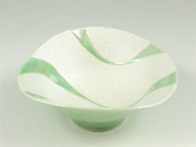 有田焼HOME鉢 小鉢 ラスター彩に薄緑色の流水を表現しています。 緑青白釉流水ラスター 朝顔型中付 価格: ¥2,200 (税込) [ポイント還元 22ポイント~] 販売期間: 数量: 個 在庫 在庫あり 返品についての詳細はこちら サイズ 13.6cm×12.9cm×高さ5.5cm 材 質 磁器 梱 包 ダンボール箱 電子レンジ 可