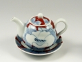 有田焼伝統の染錦(下絵と上絵)の絵柄で、椿柄を丁寧に描いています。