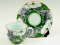 有田焼HOMEコーヒーカップ コーヒーカップ 有田焼伝統の染錦(下絵と上絵)の絵柄です。下絵に呉須(紺色)ではなく、グレーを施しているところが斬新です。 染錦山茶花(緑) コーヒーカップ&ソーサー 価格: ¥8,800 (税込) [ポイント還元 88ポイント~] 販売期間: 数量: 個 在庫 在庫あり 返品についての詳細はこちら サイズ <碗> 8.3cm×8.2cm×高さ6.7cm <皿>14.8cm×高さ2.2cm 容 量 150cc(標準) 材 質 磁器 梱 包 化粧箱入 電子レンジ 可 赤と組合せてペア碗皿になります。コーヒー碗皿は1個化粧箱入です。ペアでお求めでペア化粧箱(2個入)をご希望のお客様は、ショッピング カートの備考欄に組合せの詳細をお書きください。