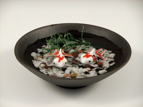 出目金 黒陶鉢 小 小石のセットです。
