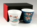 有田焼の伝統美である柿右衛門様式と今右衛門様式をペアにした、有田焼らしい焼酎グラスです。