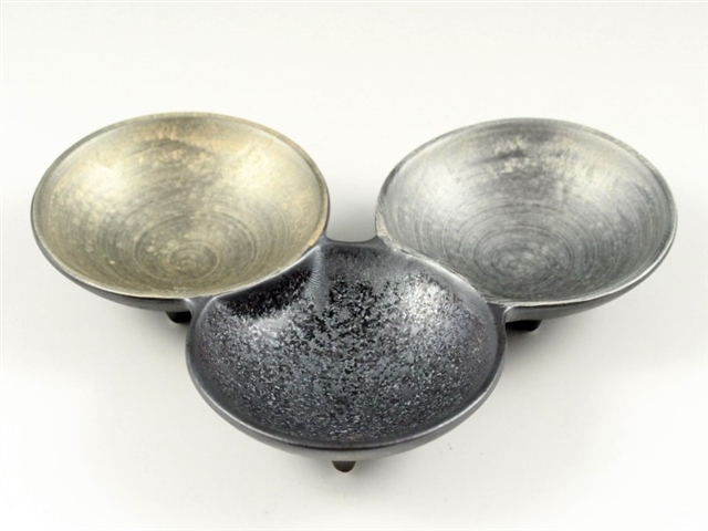 有田焼HOME有田焼 三光堂 セレクト 晶雲母銀 晶雲母銀(しょううんもぎん)は陶悦窯独特の晶(結晶釉)という釉薬を掛け本窯焼成した上に、雲母金と雲母銀という上絵の具で赤絵焼成した、優雅な光沢を持ったシリーズです。三種の薬味入・千代口・珍味入等にお使いください。 晶雲母金銀 三組小皿 価格: ¥3,190 (税込) [ポイント還元 31ポイント~] 販売期間: 数量: 個 在庫 20個 返品についての詳細はこちら サイズ 17.4cm×14cm×高さ3cm 材 質 磁器 梱 包 色ダンボール箱入 電子レンジ 可 熨斗(のし) ラッピング 紙袋 メッセージカード 無 料 熨斗(のし) ラッピング 紙袋 メッセージカード 無 料