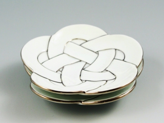 白磁プラチナ梅線結び 小皿