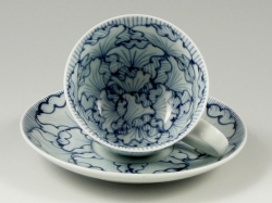 ハンドル(取っ手)の青と組合せてペア碗皿になります。