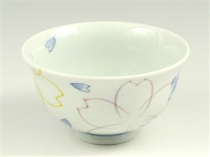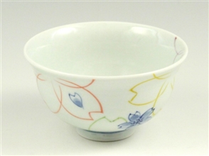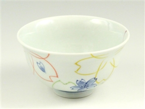 染付色絵桜 茶碗 小