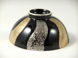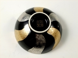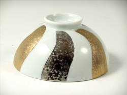 金彩とプラチナ彩を交互に捻って施した、豪華で高級感のある茶碗です。