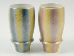 ラスター二色縦吹(青)と組合せてペアビアグラスになります。