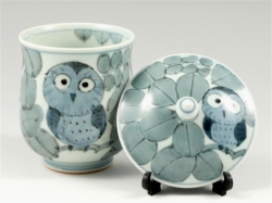 ふくろう 蓋付特大湯呑